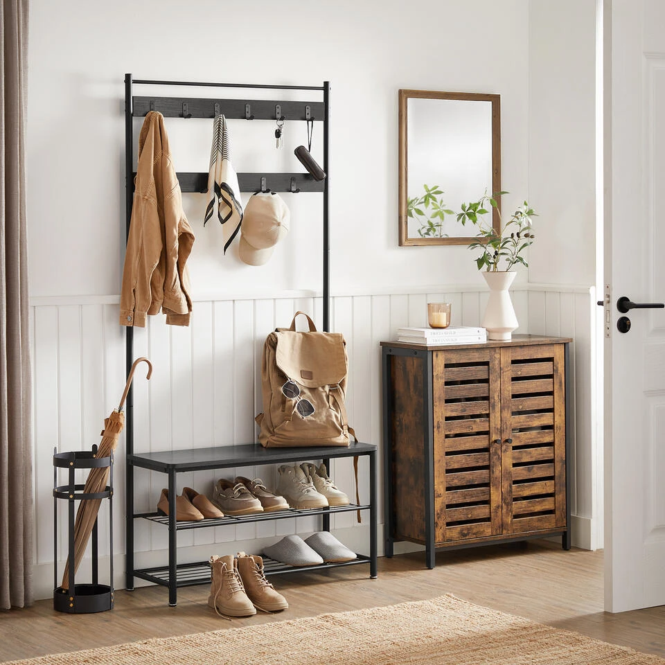 ▶ Multifunctioneel: kapstok, schoenenrek én zitbank in 1 meubel
