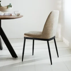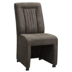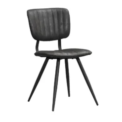 Eetkamerstoel Senja – Lederlook – Donkergrijs – Naturel Hout
