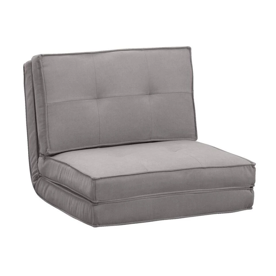 Slaapfauteuil Sion is een praktische en comfortabele 1-persoons slaapbank in de kleur grijs. Deze compacte bank/stoel past in elke kleine woonruimte en zorgt voor een comfortabele zit of slaapplek. Hij is ontworpen voor kleinere huizen waar ook wel eens iemand blijft logeren. Dankzij de mooie stoffering met decoratieve knopen past de bank in elke moderne setting. De afmetingen van de slaapbank is: 70 x 212 cm.