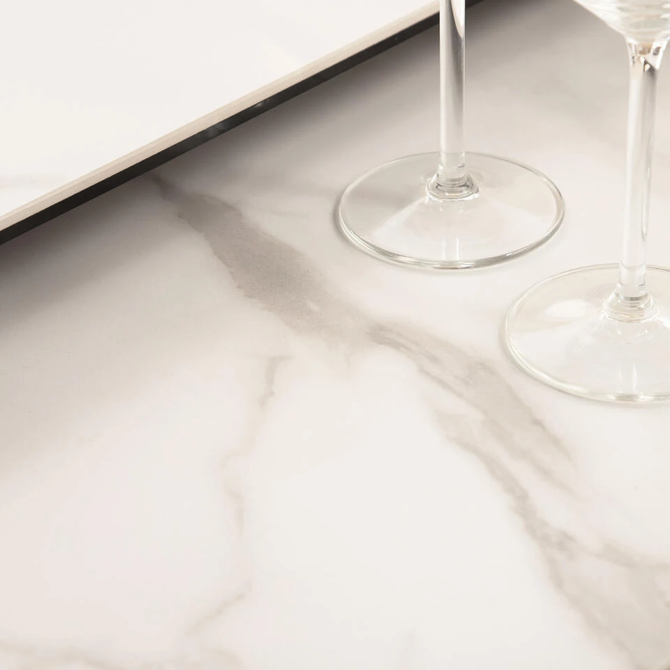 - Keramisch tafelblad en gepoedercoat metalen onderstel